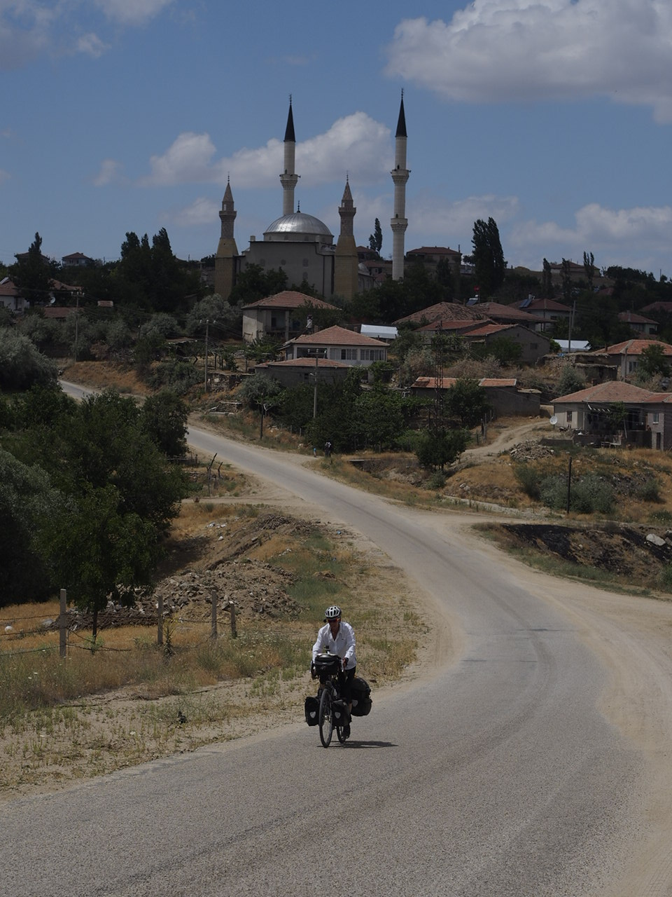 Clare whizzing out of Yenisabanli, we both having survived the terrible gravel patch on the downhill junction in town.