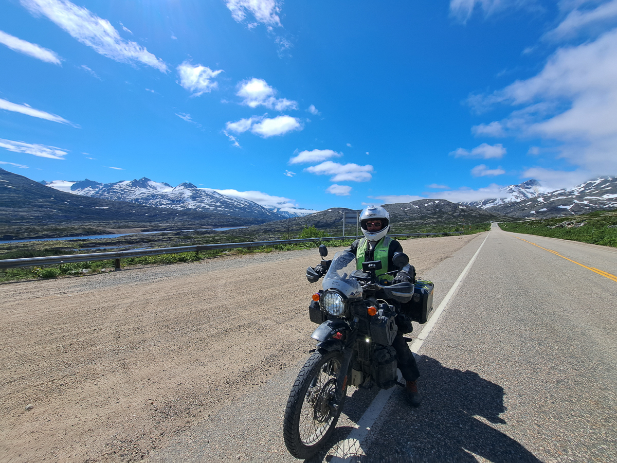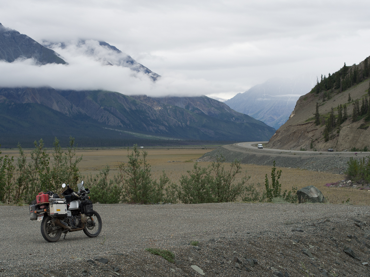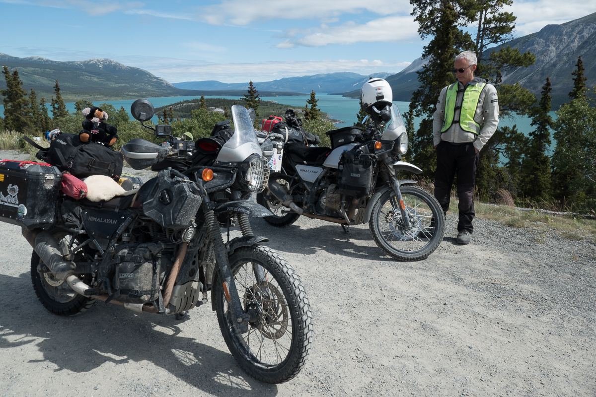 The second, 3,000 mile, service at Anchorage had unleashed the full potential of our Royal Enfield Himalayans, well, 5,000 rpm of it.  We’re now cruising at a staggering 55mph.  Andrew, at The Motorbike Shop, had chuckled that we’d barely notice the difference from the running in speeds. Later on when loosened up more, we find the engine will cruise at 60-65mph with a bit of chatter but no real distress. However, the in-helmet wind noise at that speed, with only a small screen, gets a bit painful. Not to worry!  One advantage of being so slow is we have plenty of time to take in the views and observe the wildlife.