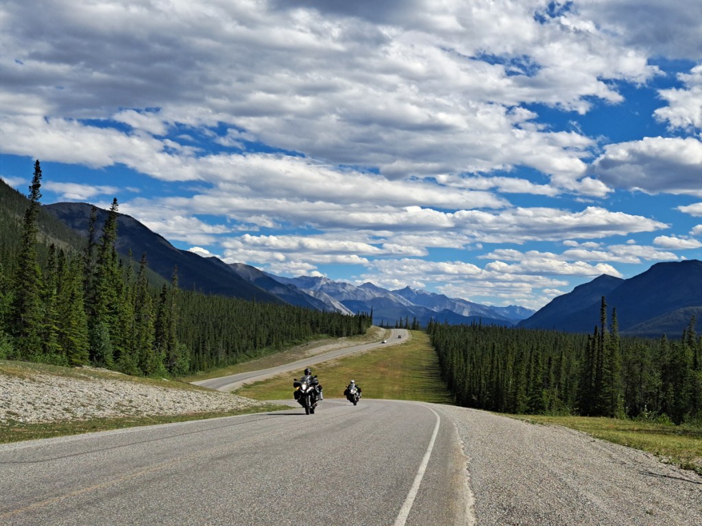Riding south down the Cassiar – Stewart Highway, a part of our backtracking, took us straight into the scene of a big forest fire from back in 2010.  The skeletons of black spruce trees still stood with new growth at their feet but clearly it’s going to take some time to be anything other than the scene of a forest fire.  The following year a second fire hit the area but it’s spread was restricted because of the previous burn out.  Evidence of past fires is very clear throughout our travels in all but the prairies which we entered near Edmonton.
