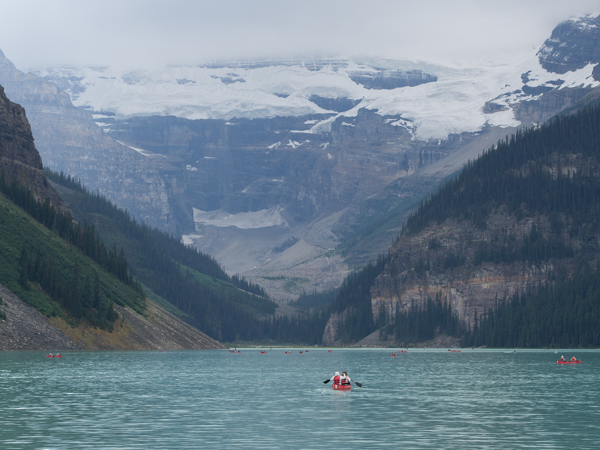 Starting our route across the Saskatchewan pass into the Rockies we went into the second area to display the ‘No Cellular signal for 230km’ sign.  The first had been along the Alaskan Hwy where we ran into problems around Muncho Lake.  We had wanted to camp in that area but were always too late, arriving at any time after five.  A number of the sites could be prebooked but not if you were on the road with no signal.  It was the same thing on the Saskatchewan Pass.  We were prepared to pay a little extra to get a campsite with more facilities.  A flush toilet – luxury, potable water – great.  As it happened Crimson Lake campsite, at the start of the pass, talked the talk but couldn’t deliver.  The initial site they offered us was unsuitable because it was on a slope and had a puddle where it would seem that recent flood water had collected.  When I pointed this out they were happy enough to move us but the hoped for shower was off!  Along Hwy 93 and 1A the scenic route through the Rockies from Jasper to Banff we had the same problem.  It was in the 230Km no cellular phone signal area.  We’ve been to Alaska before in 2012 and had hired a satellite phone.  It was expensive, bulky and certainly didn’t do internet.  We didn’t consider we needed one on this trip but hadn’t anticipated large areas where we couldn’t use our cell phones.  Along the highway through the national parks we could turn up at about a quarter of the campsites the rest had to be pre-booked which we were unable to do.