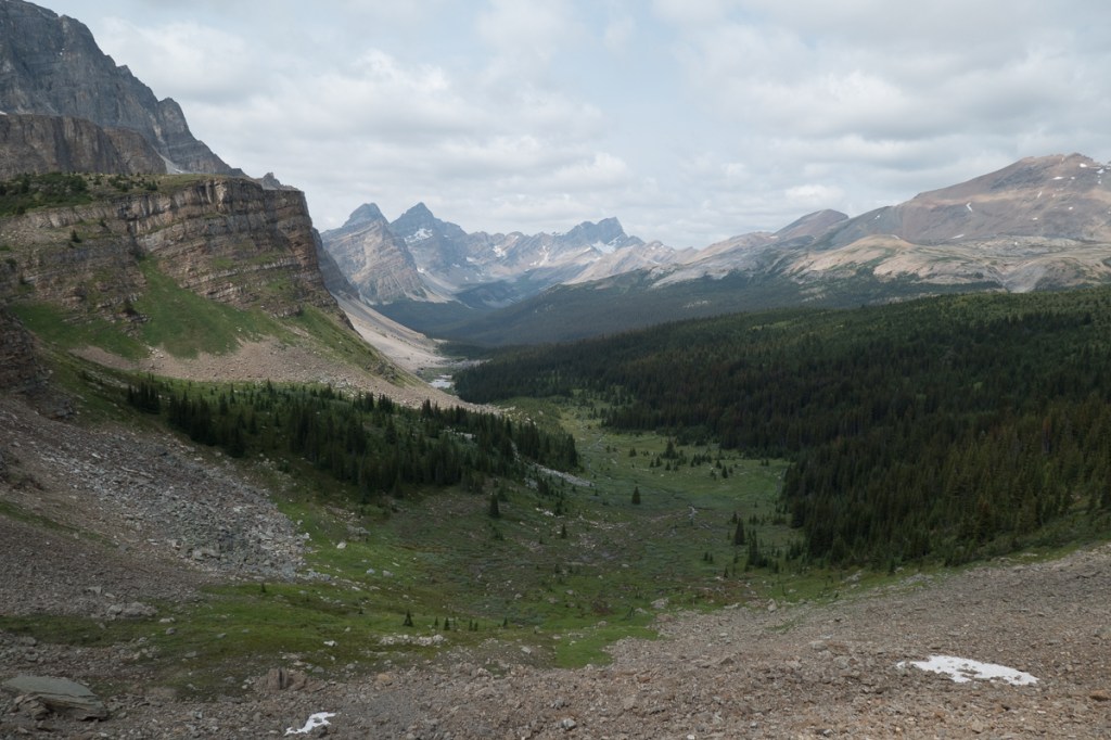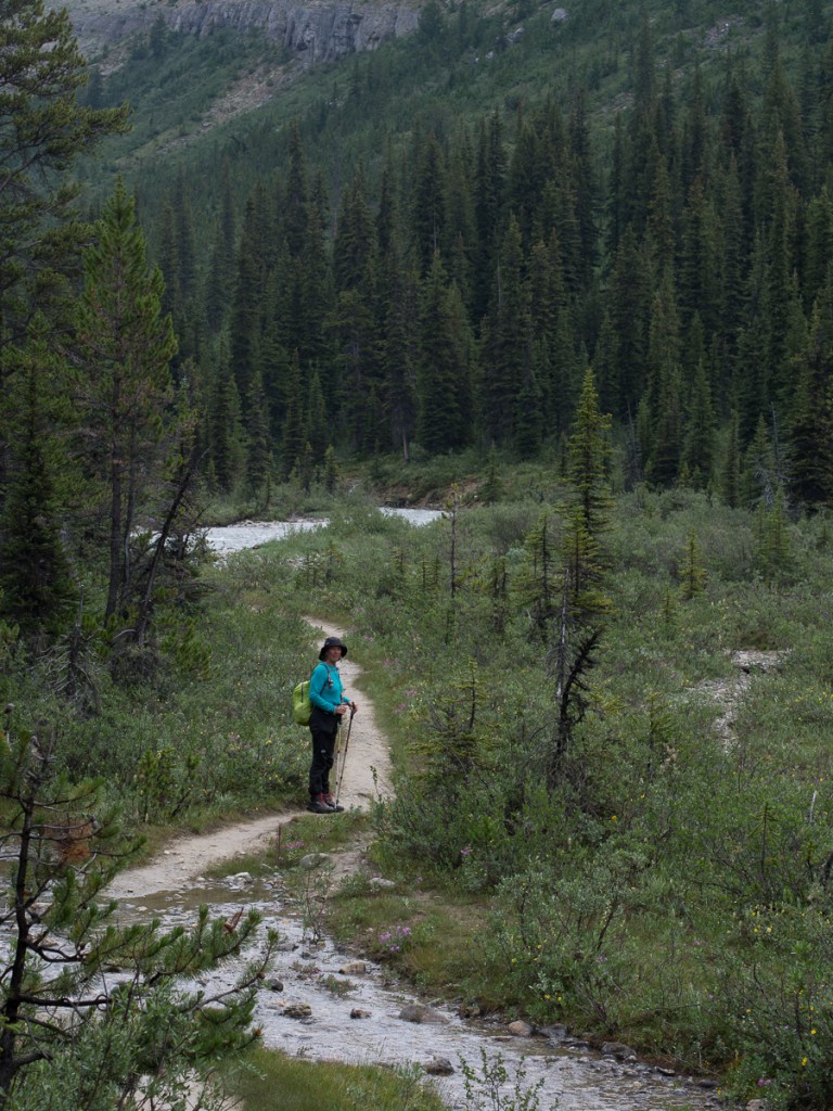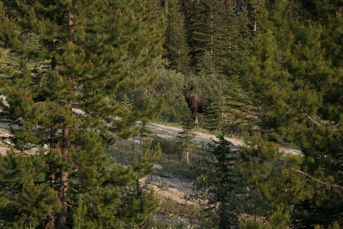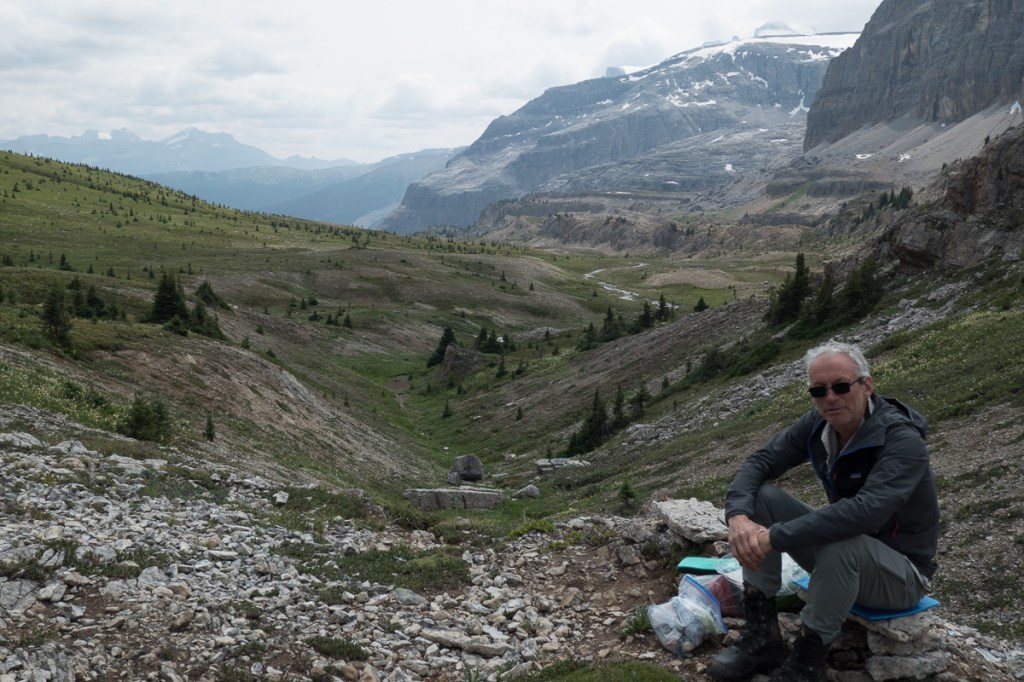 Our time in the Rockies has been fabulous.  We’ve done the classic tourist stuff, Lake Louise and Banff.  Jasper is off limits for reasons explained above but the event that will put it in our anals of special occasions is the trail we took up to Mosquito Pass.  Three of us set off.  Simon, a young man visiting the area on his own and wisely not brave enough to head off solo in bear country had joined us.  I was jingling away.  Well aware of the jokes – ‘How do you tell Black bear skat?  By the berries.’  ‘How do you tell Grizzly bear skat?  By the peppery smell and the bells.’  Gid and Simon nattered away.  Hopefully that was noise enough!