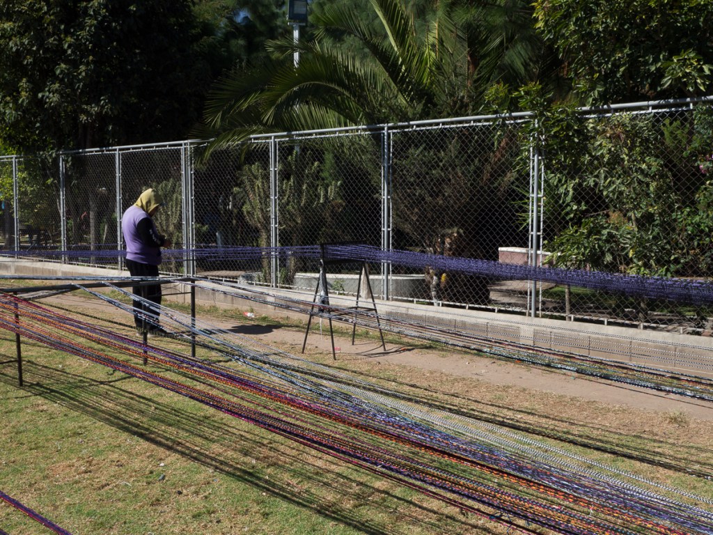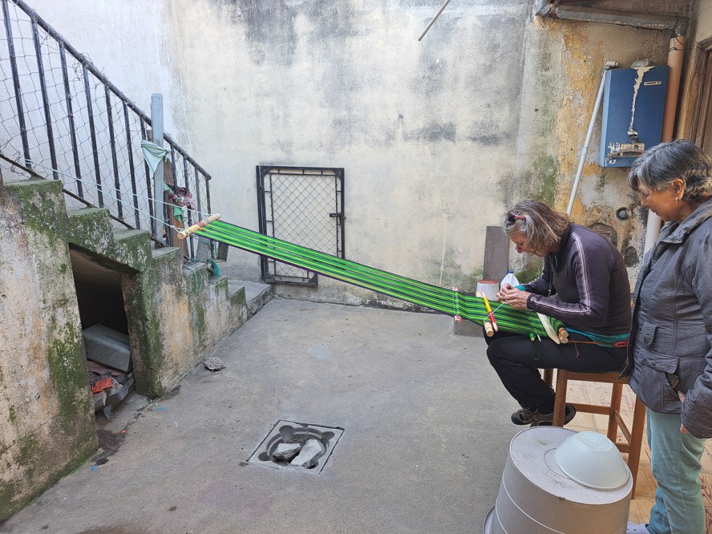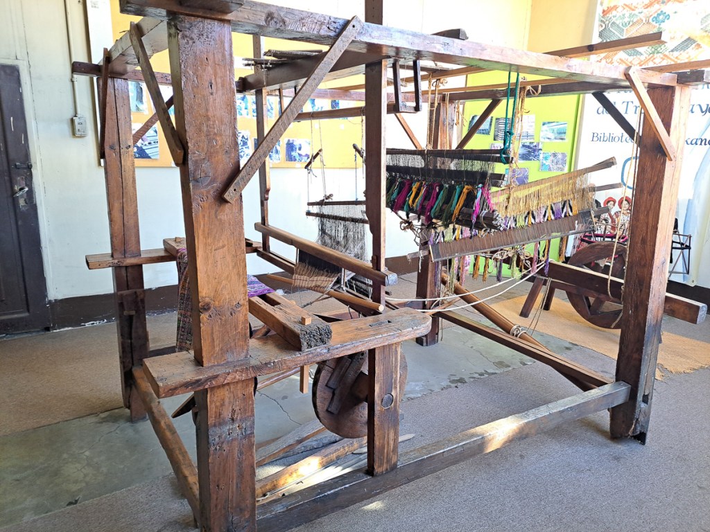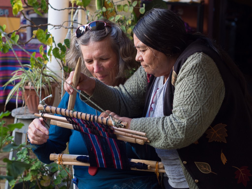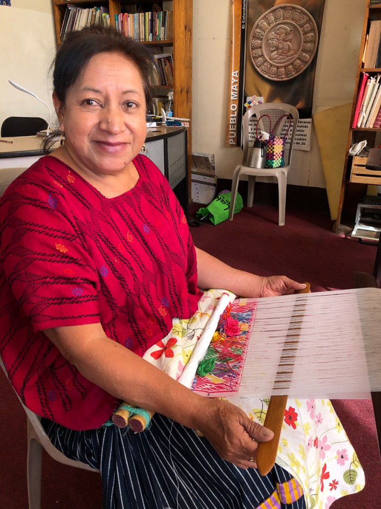 Another attraction of Xela was the presence of schools of traditional backstrap weaving. A taster session as a part of our language course was all it took – Clare was going back for more. Another week in Xela. I continued with 4 hour Spanish lessons, Clare cut down to two, and spent long mornings and late afternoons in the weaving school. By the time we left Xela, we were loaded down with: