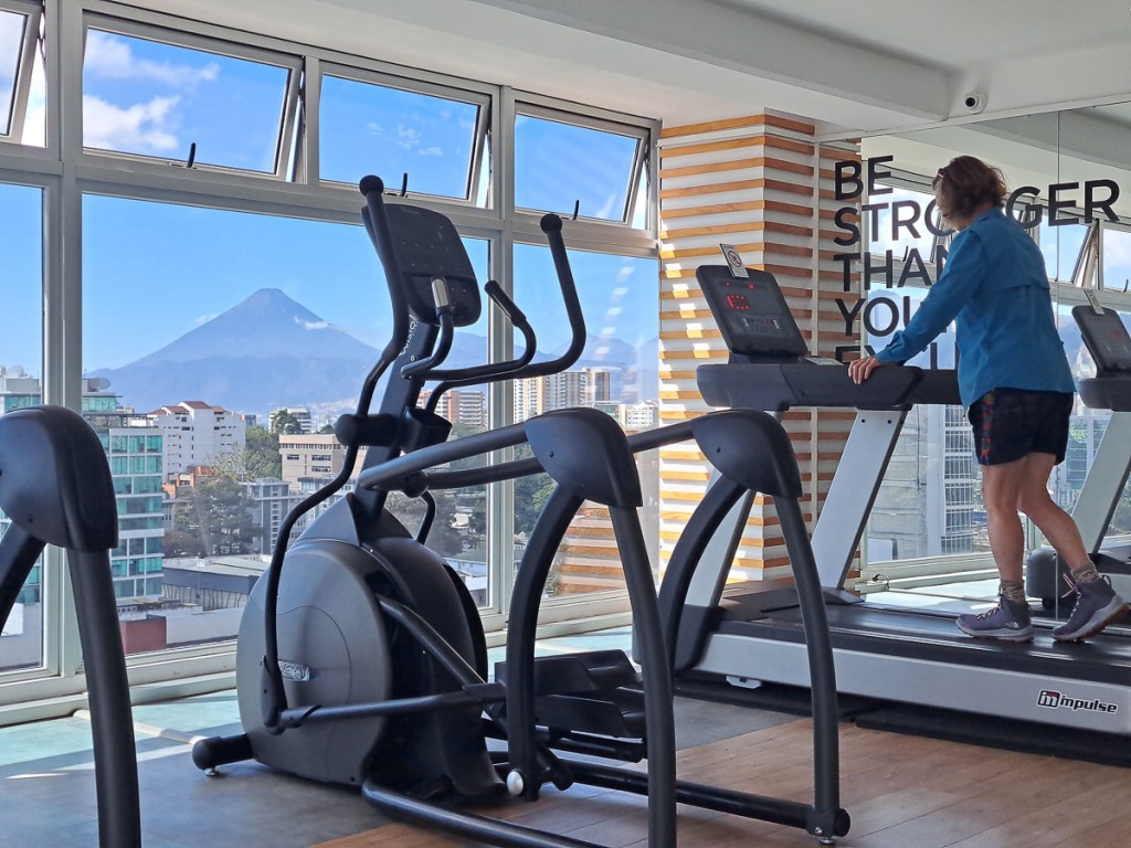 We enquired at an Acatenango hike tour operator before leaving Antigua and rather hesitantly booked up for two weeks ahead. A bit of breathing space for both of us. We could have a personal guide so could set our own pace, and private hut at the base camp so could have uninterrupted sleep and rest. Gid is very sociable so would miss the cameradie but that was the deal if I was to do it. That gave me two weeks to make some improvement on my health or fitness – laughable really. A good start was our Guatemala City AirBnB in a sixteen floor apartment building so up and down the steps was the first stage, the treadmill in the gym was stage two together with actually using my skipping rope which had started to collect dust. Out walking around Guatemala City for 3-4 hours each day must also have helped. Plus I bought some lightweight fabric boots – our Altberg dual purpose boots are comfy, grippy and robust, but very heavy for a long climb. Altitude sickness pills completed the preparations.