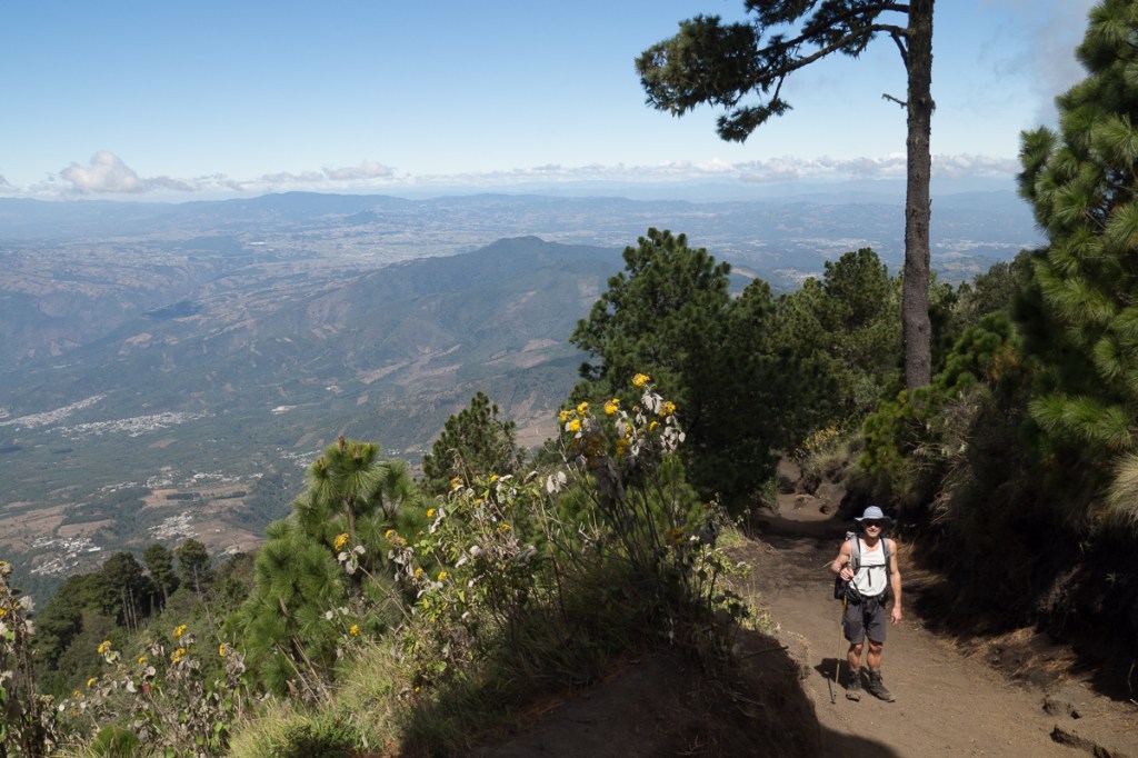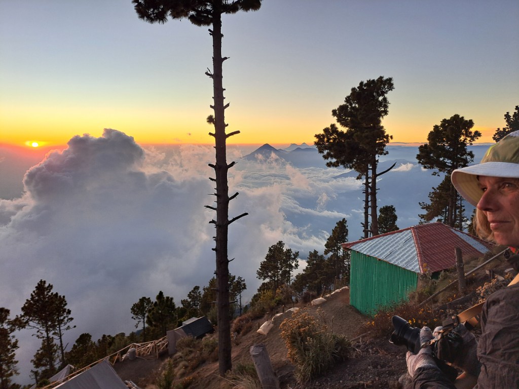 Gid has had ‘climb a mountain’ on his bucket list since Alaska. I was not so motivated. I’d managed to avoid a couple of possible climbs riding down through the Rockies and wasn’t keen to change my resolve but Acatenango had added attractions. It came with a base camp sleep-over near the top, a view of an erupting ‘sister’ volcano, Volcan de Fuego, from our campsite and a follow up extra hours hike to the top for the sunrise views the following morning. Whilst it did look enticing we had hiked up the Volcan San Pedro to admire the views of Lago Atitlan two weeks before to a height of 3000m and I had struggled badly. Scary after a lifetime of breezing up things like that. Was I just unfit? Nine months of very little exercise sitting on a motorbike has to take it’s toll. (Gid has taken every opportunity to jump up and down, workout on the yoga mat and go for sporadic runs). Or was it the remnants of my cold and chest infection? Either way I was nervous of committing to a 4 hour plus hike, sold as ‘hard’, up a mountain to near 4000m. Gid was generally unaffected by our Atitlan hike but had foolishly not manicured his feet. The descent wrecked his big toes’ nails as his feet pressed against the front of his boots. The toe nails got infected, to the extent of seeing a doctor who prescribed intensive cleaning, antibiotics and no running for a week.
