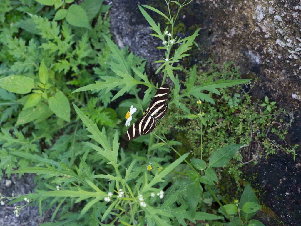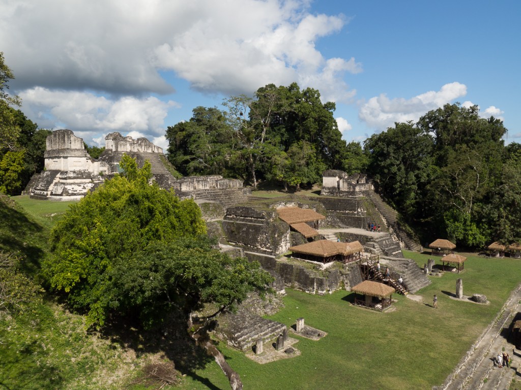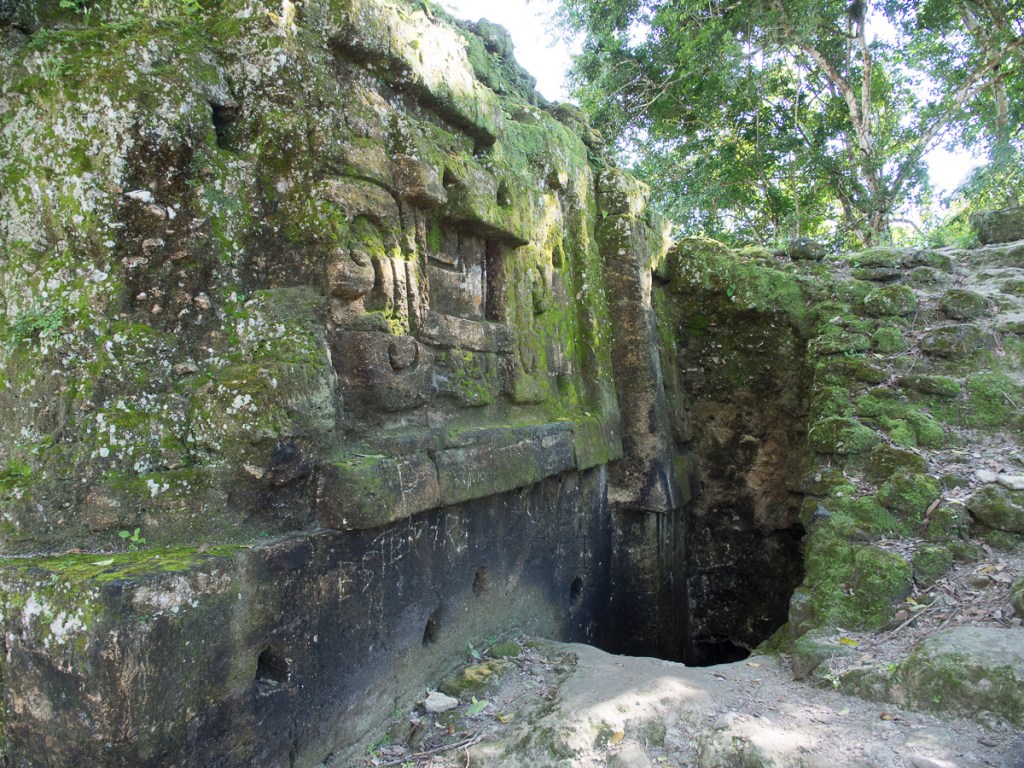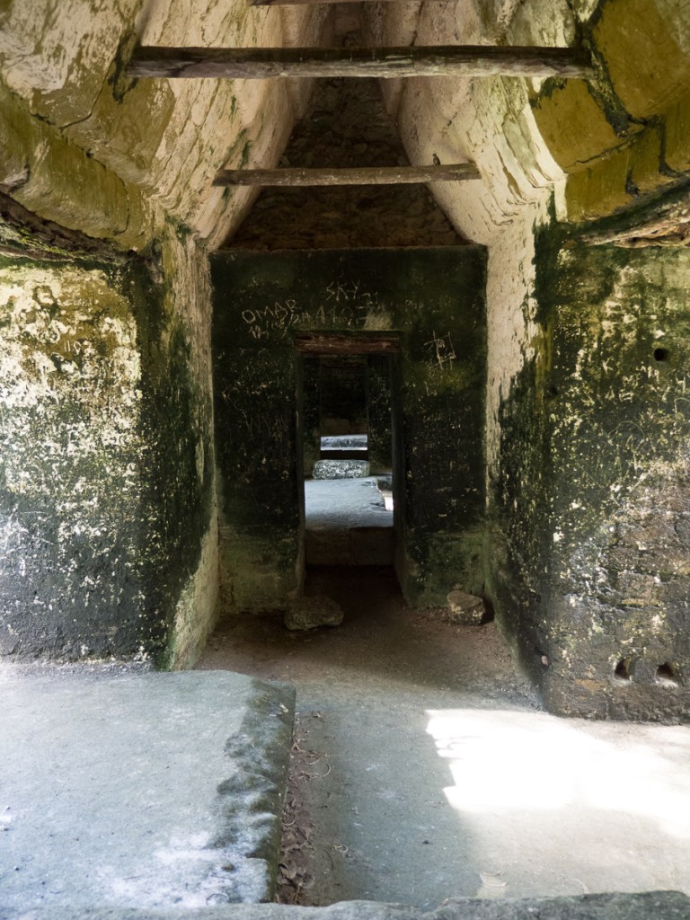Tikal was unique. The extensive site was spread out amongst the jungle with small tracks joining the buildings (there are still hundreds that haven’t been excavated). We choose from the map which we wanted to visit leaving the central plaza until last. The outer edifices were fairly quiet with a feel of having been recently discovered and left in a more rural state which added to the attraction. Plus, we could clamber all over them. A few which were more delicate – or dangerously steep – had steps up the side with a ledge leading back onto the pyramid near the top which seemed a good compromise. From the top, we had a view over the jungle treetops, with the odd pyramid protruding.