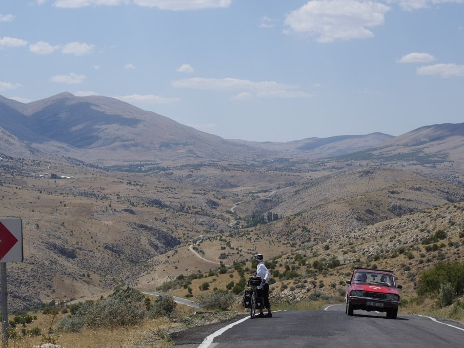 Steep hills on the way to Afsin Published July 21, 2016 at 1280 × 960 The hills riding to Afsin were savage, it was hot, and few provisions available. Spot the post-coup flag on the bonnet of the typical rural Renault 12. Trackbacks are closed, but you can post a comment.